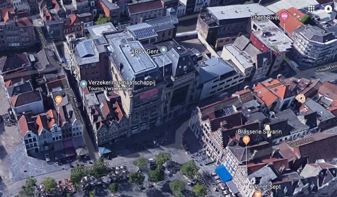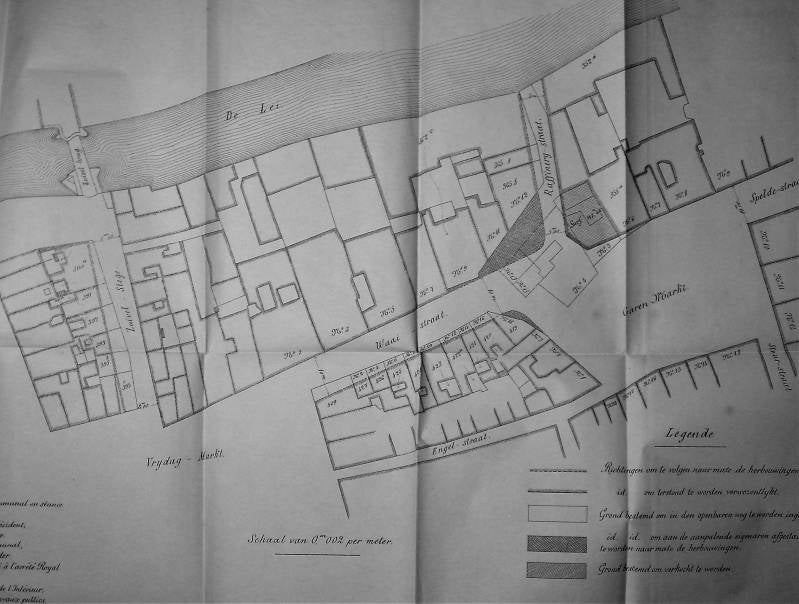Verbindingsstraatje tussen de Vrijdagmarkt en het Edward Anseeleplein (voorheen Garenplaats). De ene straatzijde (pare nrs.) heeft haar oorspronkelijke uitzicht en schaal bijna ongeschonden behouden en vormt een zeer typische gevelwand welke vnl. geritmeerd wordt door hals- en klokgeveltjes met classicistische invloed. De woningen aan de overzijde tussen nr. 1 en nr. 7 zijn echter gesloopt en vervangen door een open ruimte met autoboxenDe winkel van stoombakkerij Volksbelang (niet te verwarren met de gelijknamige, liberale krant) in de Waaistraat. De oprichting van de katholiek-liberale coöperatieve dateert van 1887. De stoombakkerij vestigde zich meteen in de Waaistraat 3, waar in 1892 een nieuwbouw werd gebouwd. Nu is hier het Ghent River Hotel gevestigd.