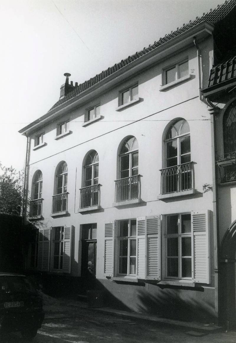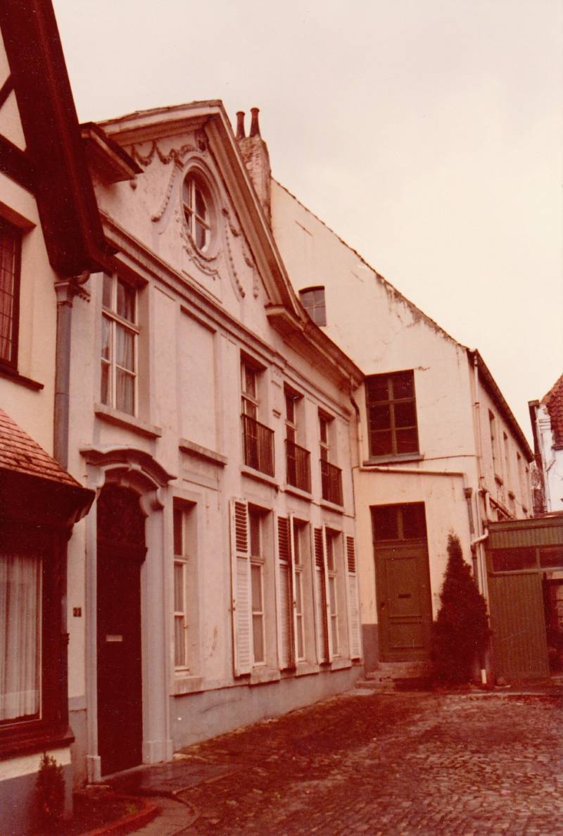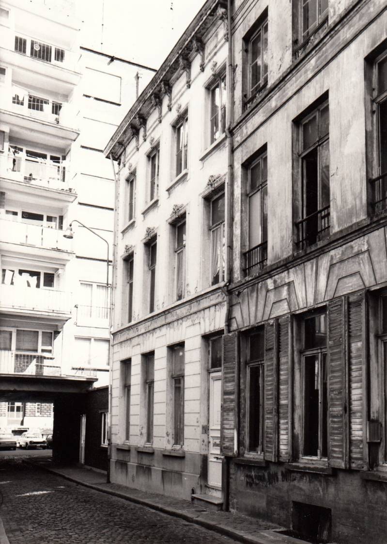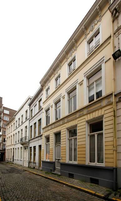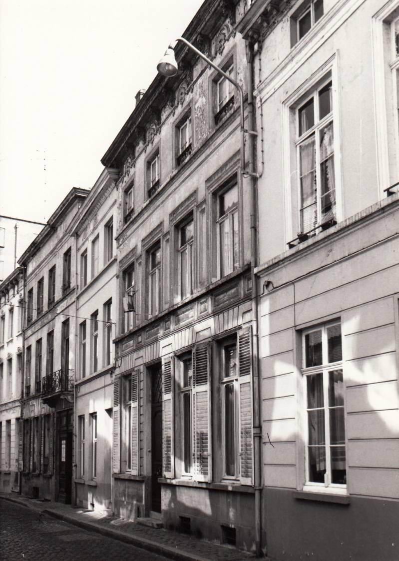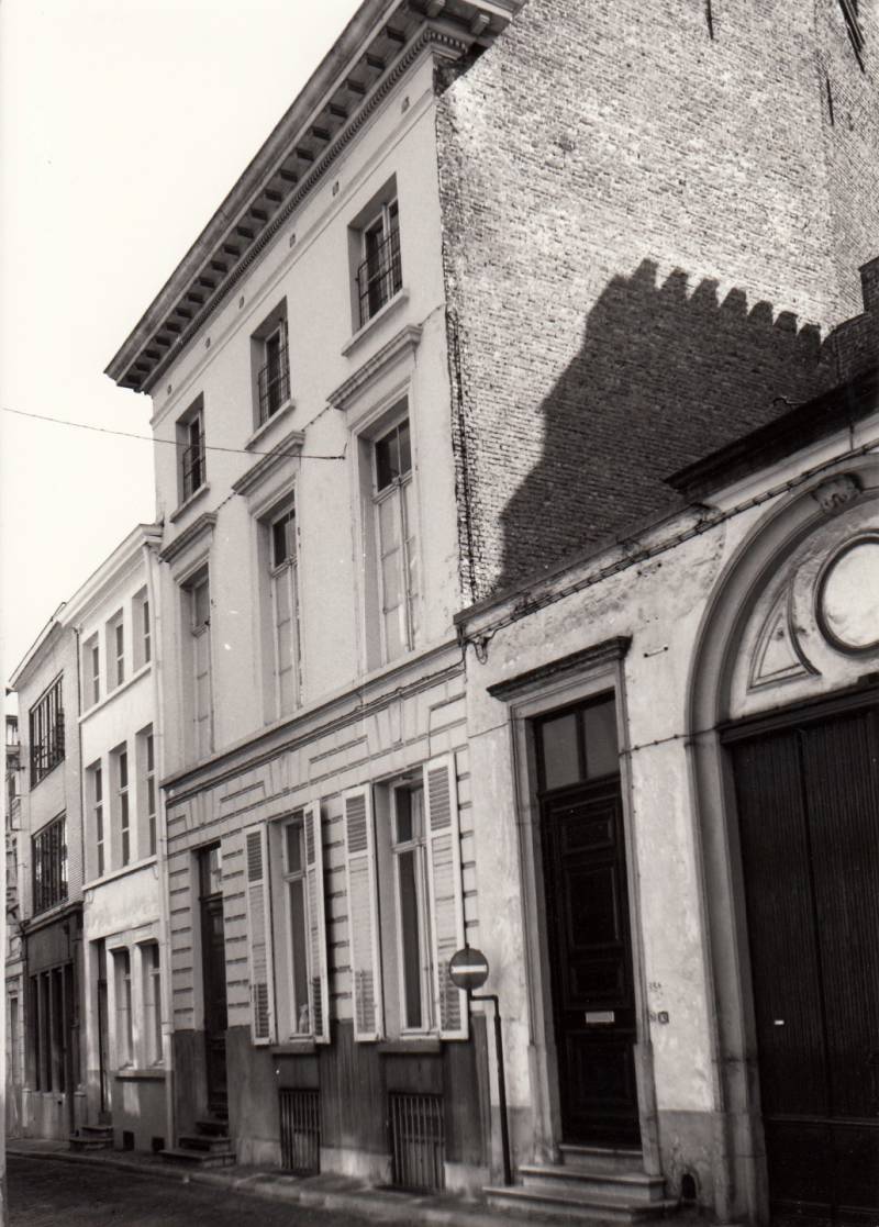De straatzijde aan de kant van de gedempte Houtlei (onpare nummers) wordt gevormd door een 19de-eeuwse bepleisterde gevelwand; daarachter, achteruit springend ten opzichte van de huidige rooilijn gaan nog enkele oude kernen schuil met aan de achterzijde resten van de oude stadsmuur. De overzijde (pare nummers) tussen Iepenstraat en Sint-Martenstraat kwam tot stand na sloping in 1905 van het aldaar gelegen krankzinnigengesticht