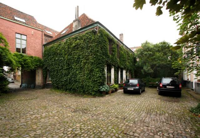 Tegenover Onderbergen, in de bocht van de Houtlei, bevond zich vroeger een pleintje waar begin 14de eeuw door de schepen en versterkingen opgetrokken werden, onder meer een ronde toren; toren en omgeving werden begin 15de eeuw toegewezen als verblijfplaats voor de Bogaarden of Beggarden, een broederschap van Franciscanermonniken, die zich voornamelijk toelegden op het weven. In 1415 verkregen zij toelating van de abt van Sint-Baafs om een kapel met klokkentoren op te trekken. Circa 1500 werden de Bogarden omwille van hun ongeregelde levenswijze verjaagd en hun verblijfplaats werd toegewezen aan de wolwevers die er een armenhuis inrichtten. Met de Karolijnse Concessie werd de toren gesloopt en het goed der Bogarden verkocht en in drie verdeeld de kapel die naar verluidt geen funderingen had en in slechte staat verkeerde werd eveneens gesloopt.