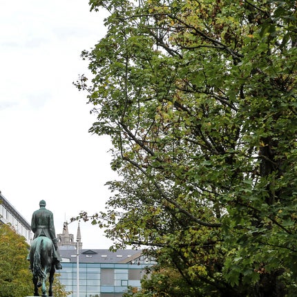 Dit monument is een vrijstaand bronzen ruiterstandbeeld, op een hoge sokkel uit blokken blauwe hardsteen. In de sokkel zit een verstevigende constructie van baksteen en gewapend beton. De funderingen werden aangebracht door ondernemers Van de Kerckhove en Gilson. De sokkel is een ontwerp van architect Jan-Albert De Bondt. Dit monument is een vrijstaand bronzen ruiterstandbeeld, op een hoge sokkel uit blokken blauwe hardsteen. In de sokkel zit een verstevigende constructie van baksteen en gewapend beton. De funderingen werden aangebracht door ondernemers Van de Kerckhove en Gilson. De sokkel is een ontwerp van architect Jan-Albert De Bondt.