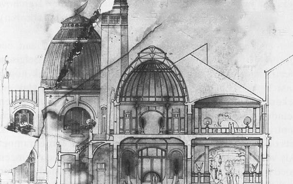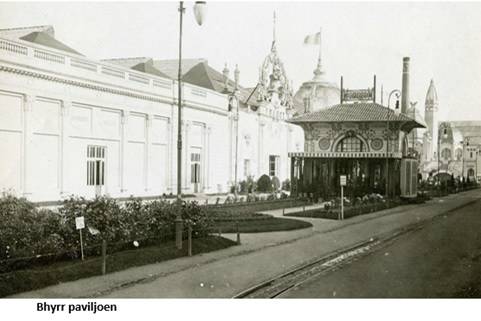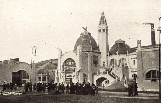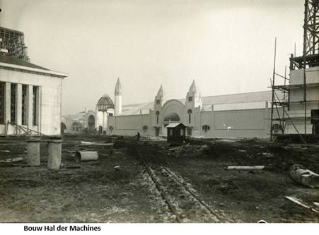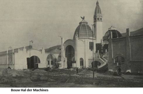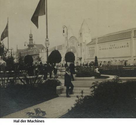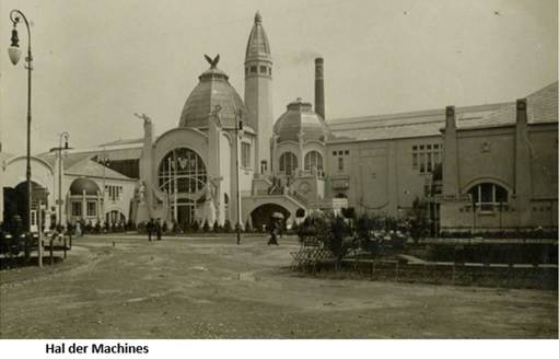 De Hal der Machines vormde samen met het Lichtpaleis en de het Paviljoen der kleine werktuigen een geheel.