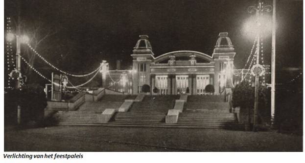 Het Paleis der verlichting was opgebouwd vanuit het idee alles wat gekend was rond verlichting ten toon te stellen in een sfeeerieke sfeer. In het midden van de 2.400 vierkante meter grote hal stond een lichtfontein waar een ware waterval van licht naar beneden stortte.